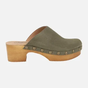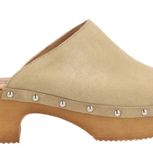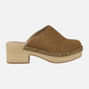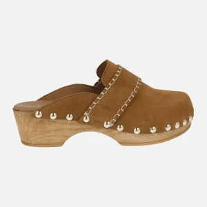 Zuecos de serraje color cuero con tira pespunteada en la pala