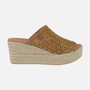 Zuecos de serraje con picados y cuña alta de esparto Arenita picado cuero
