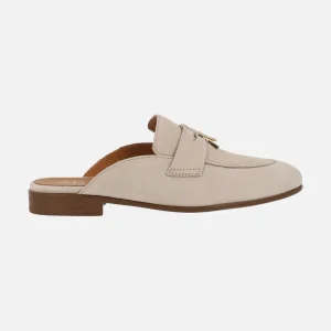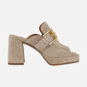 Zuecos en serraje beige con puntera abierta y hebilla Alpe Chiara