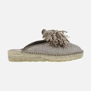 Zuecos de tejido con cadena y piso de esparto para mujer