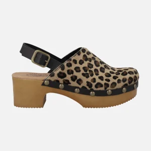 Zuecos en pelo animal print con tira al talón