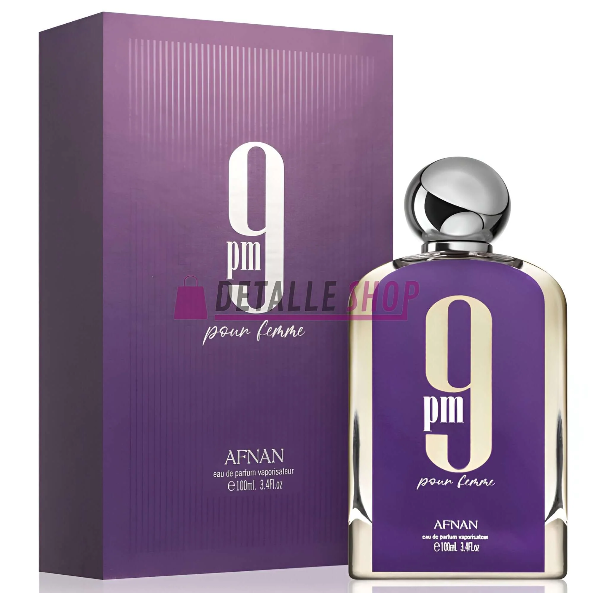Descubre la magia de 9pm pour Femme de Afnan, una fragancia floral y ambarina para la mujer moderna y elegante.