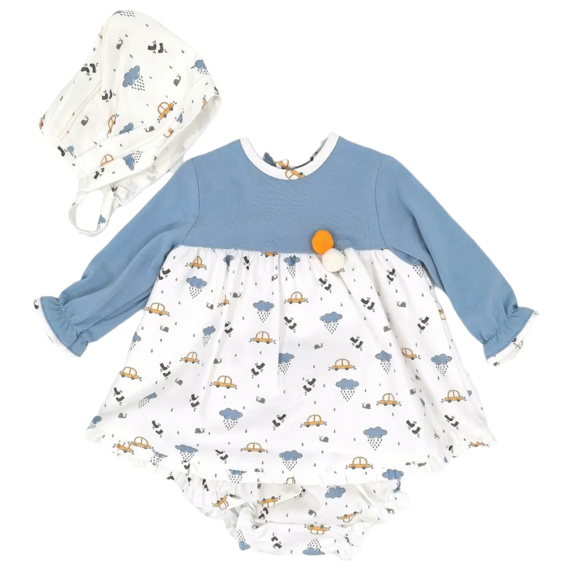 – Jesusito de tres piezas compuesto por; vestido, cubre pañal y capota a juego .
