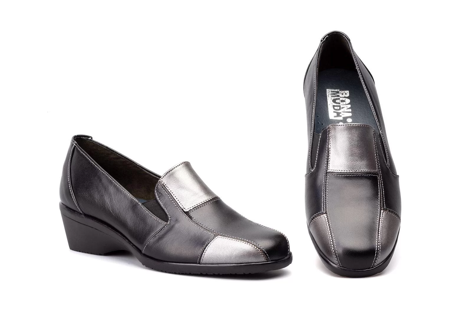 Sé el primero en valorar “Zuecos Mujer Piel Negro Plomo Cuña”