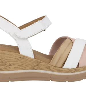 Sandalia de cuña mujer con corte exterior e interior de piel y suela de goma. Altura cuña: 9 cm