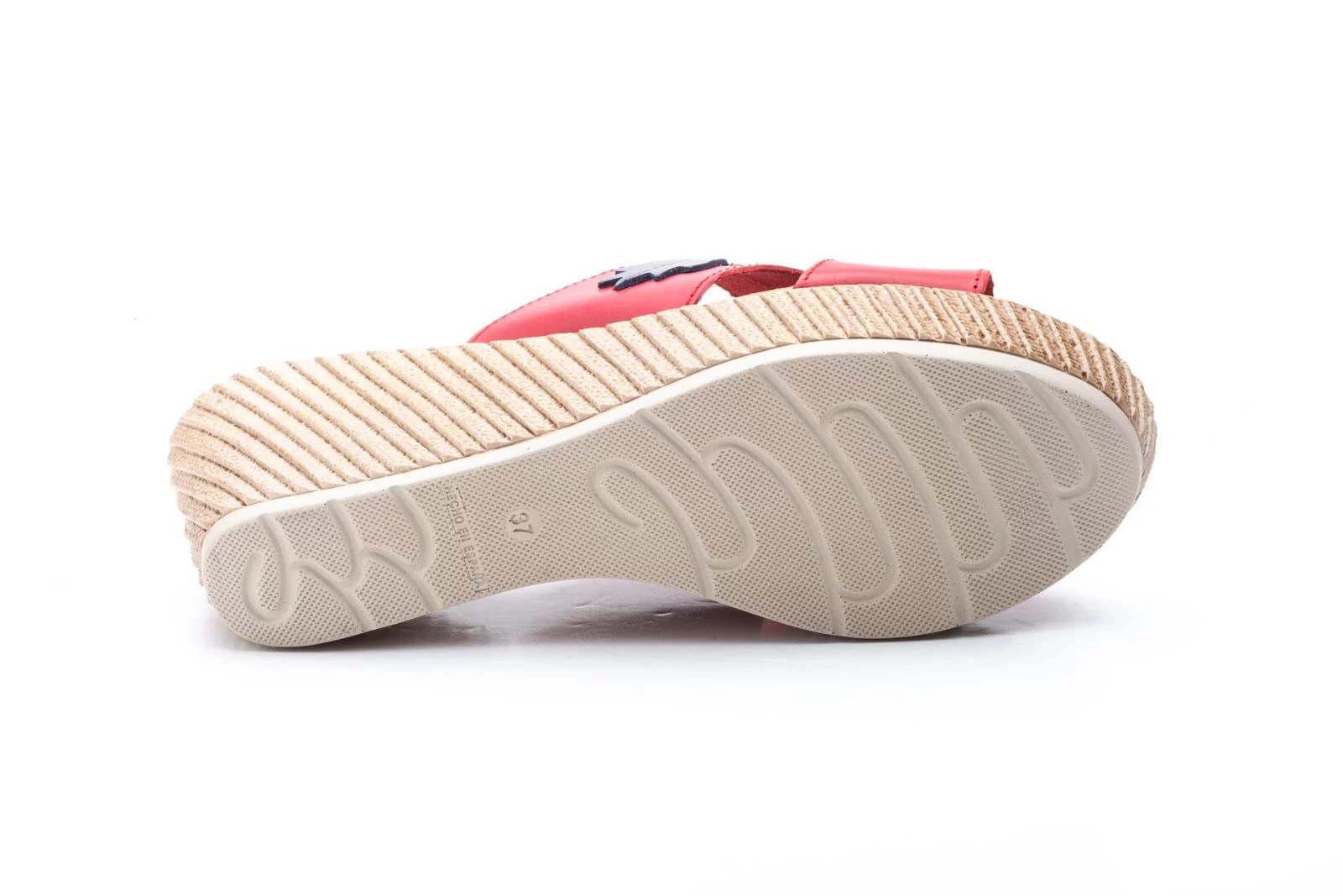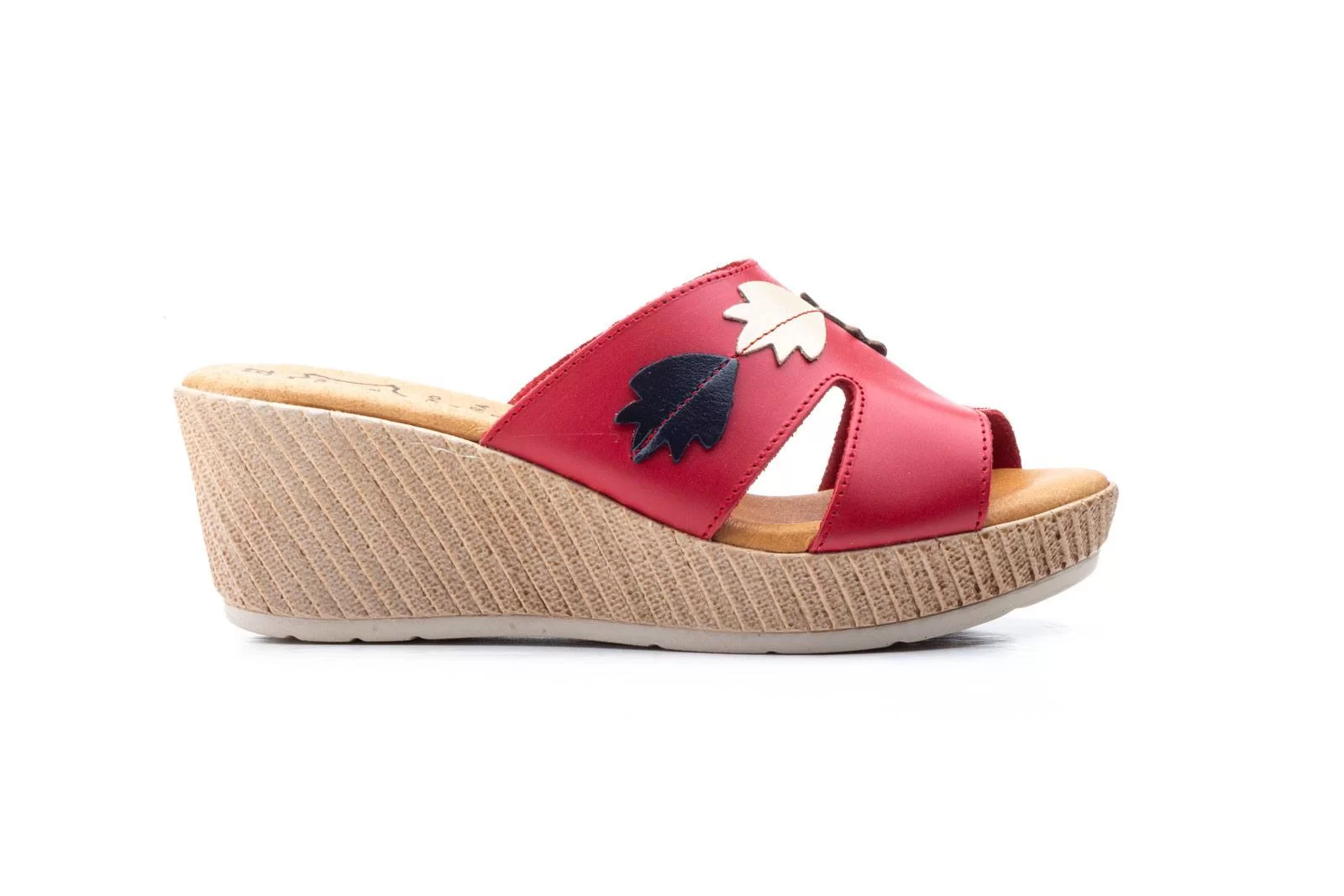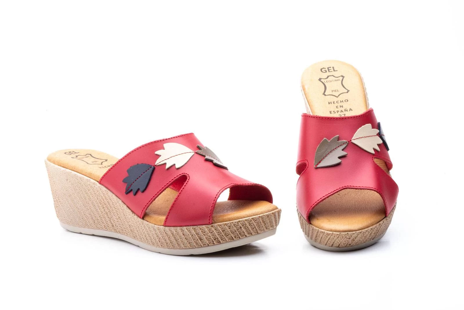 Sandalias de cuña con corte exterior de piel negro con flores multicolor, plantilla de gel forrada en piel y suela de plataforma. Altura cuña: 6 cm